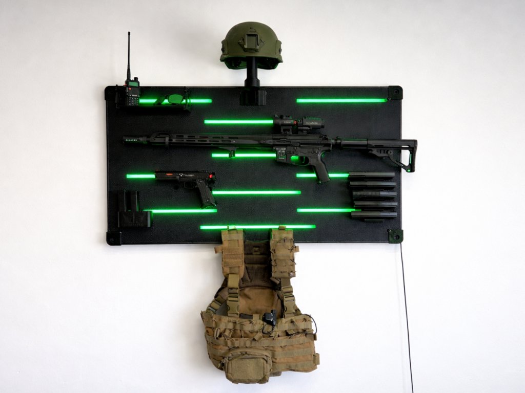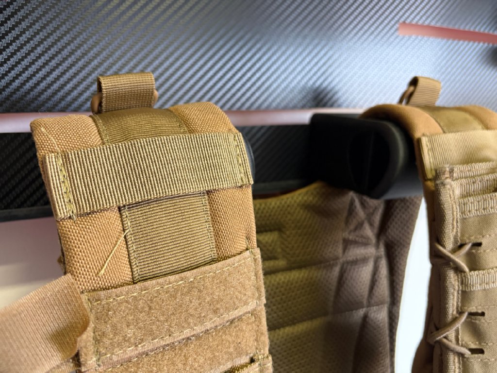 Praktický držák navržený pro zavěšení taktické vesty za ramenní popruhy přímo na GunWall. Vesta drží stabilně, je snadno dostupná a zároveň zůstává přehledně uložená jako součást sestavy.